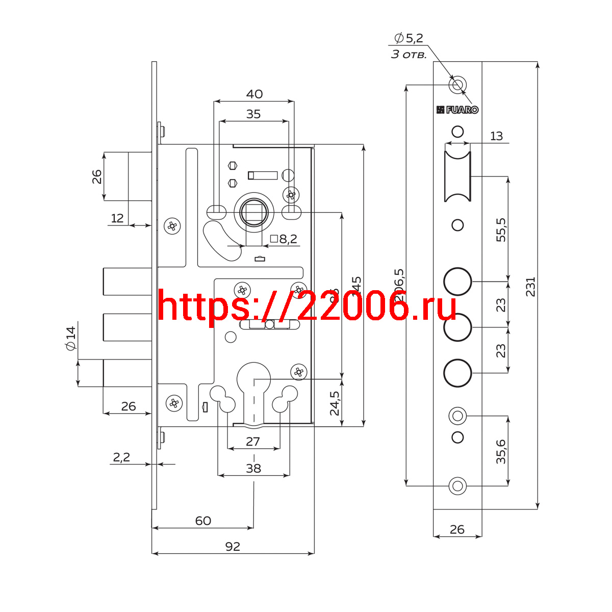- Корпус Fuaro (Фуаро) врезного замка c защёлкой MDV811/C-60.85.3R14 в Нижнем Тагиле недорого