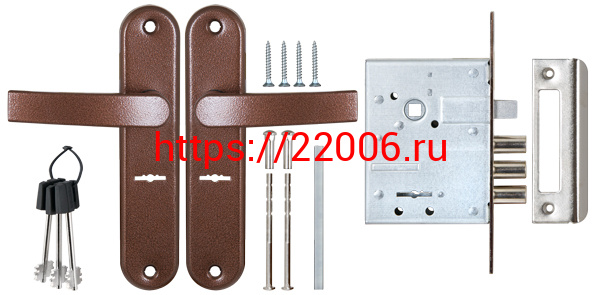 - Замок Sam (Сам) врезной сувальдный с защёлкой в комплекте с ручкой ЗВ9-8/13 (медный антик), 3 кл. /84301/ в Нижнем Тагиле недорого