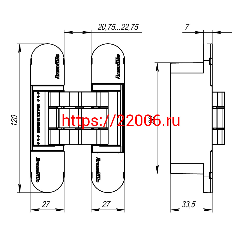 - Петля Armadillo (Армадилло) скрытой установки U3D7000 SC (12060UN3D) мат. хром TECH в Нижнем Тагиле недорого