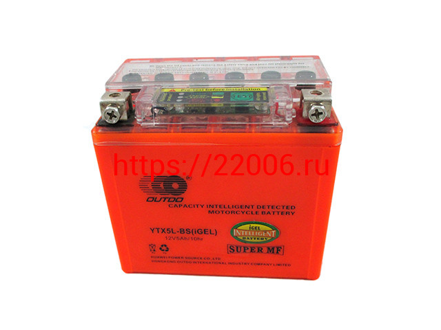 - Аккумулятор OUTDO I-GEL YTX5L-BS (12v/ 5hr) +тестер (114*70*106) 10 в Нижнем Тагиле недорого