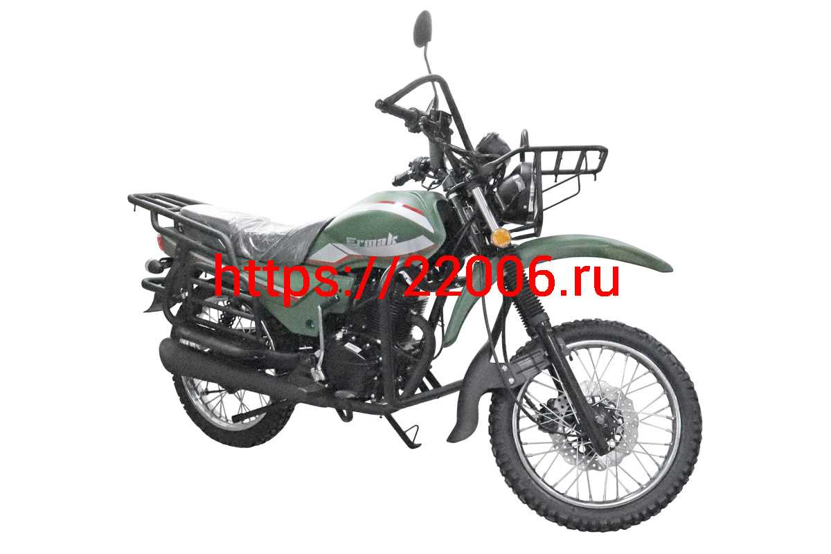 - Мотоцикл ERMAK 150 см3 (колеса спица 18"/18",внедор.резин, диск.пер.торм.,защита картер/рук/ног,сигн) ЗЕЛЕНЫЙ в Нижнем Тагиле недорого
