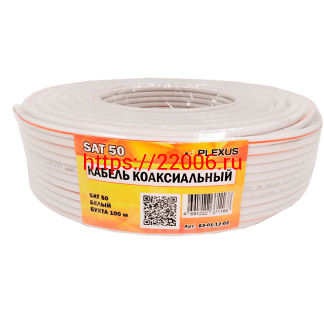 - PLEXUS RG-6 SAT 50 Медь 64% белый: Кабель коаксиальный 75 Ом, 100 м (100/600) в Нижнем Тагиле недорого