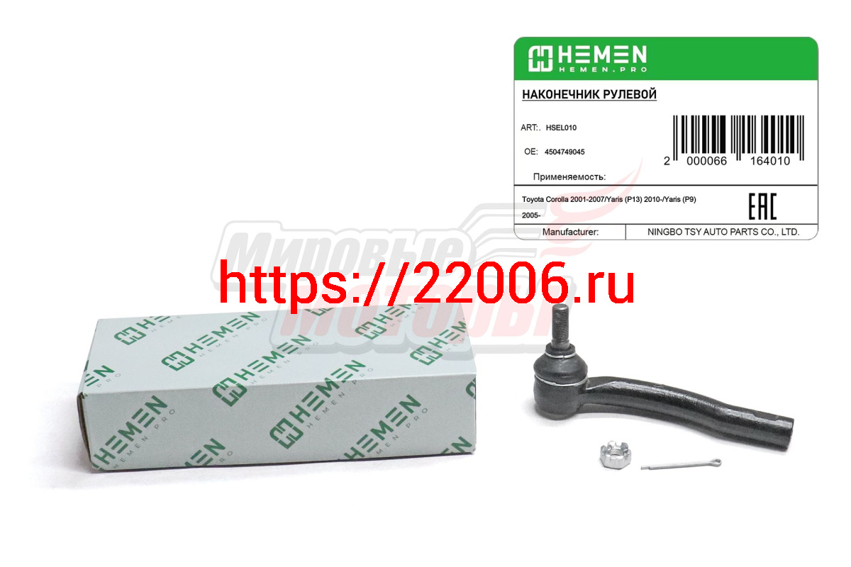 - Наконечник рулевой левый Toyota Corolla 02-, Yaris 05- (HSEL010) в Нижнем Тагиле недорого