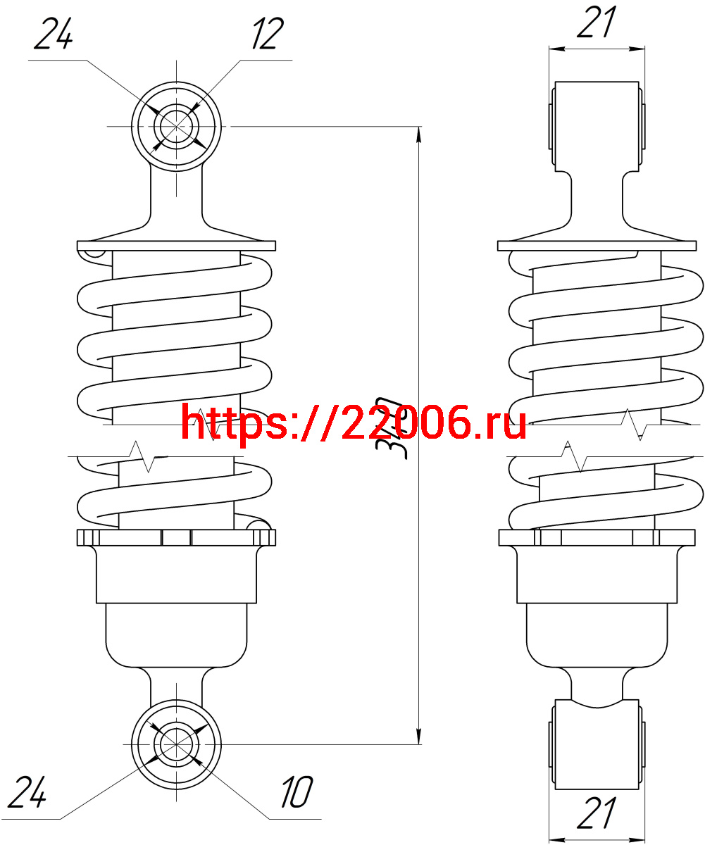 - Амортизатор зад. L-340, D1-24, d1-12, Н1-21, 2-24, d2-10, Н2-21 Alpha ANDES в Нижнем Тагиле недорого